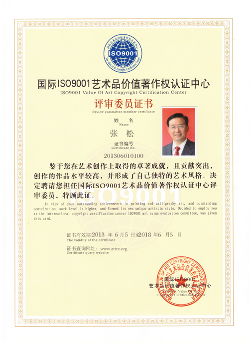 國際ISQ9000A書畫藝術家資格(中国艺术大师)