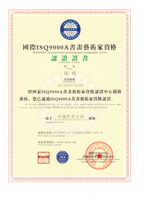 國際ISQ9000A書畫藝術家資格(中国艺术大师)